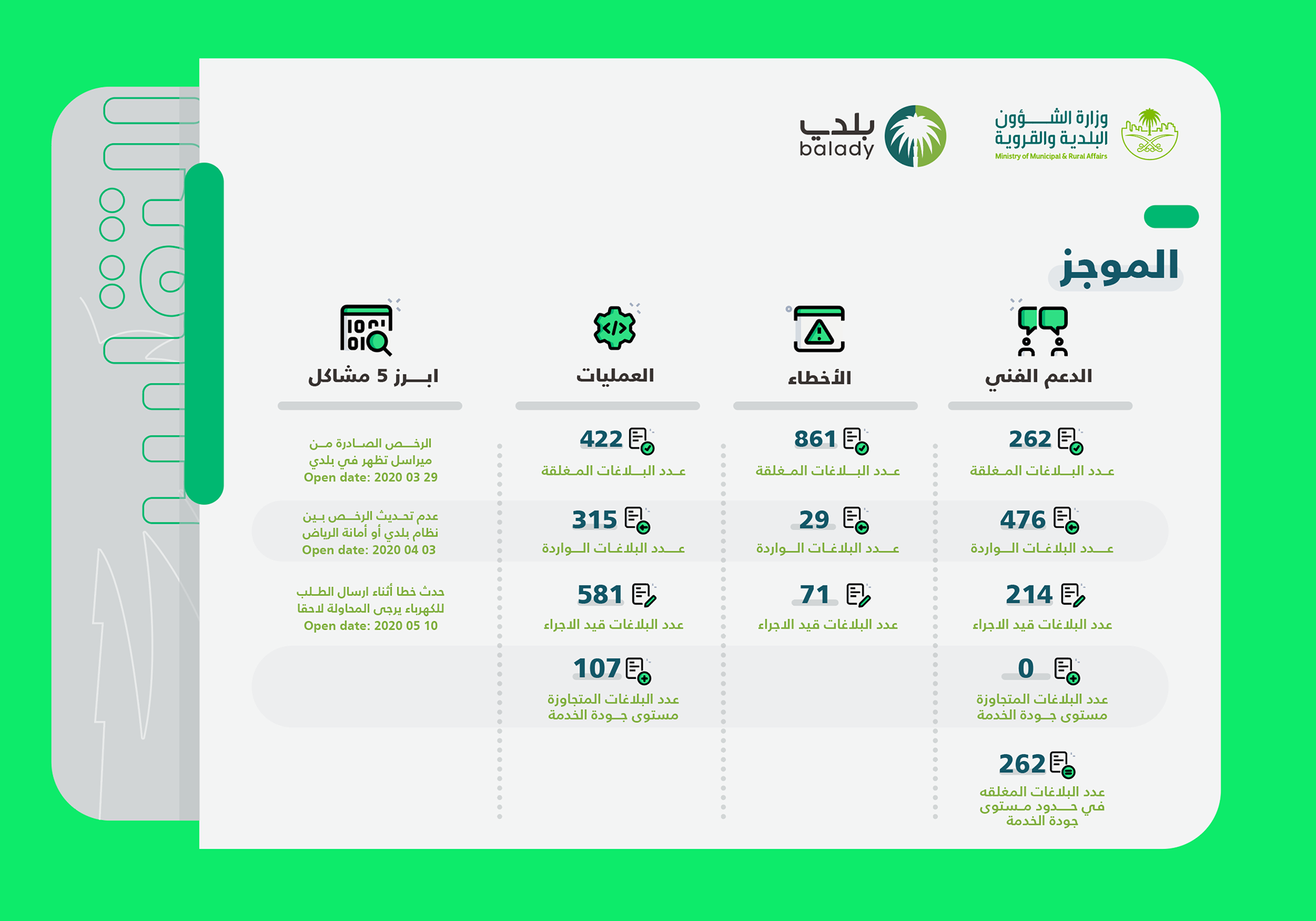 The "Balady" platform was developed in cooperation with the various municipal sector entities to be the national portal that supports the municipal community. This platform currently includes three primary responsibilities: