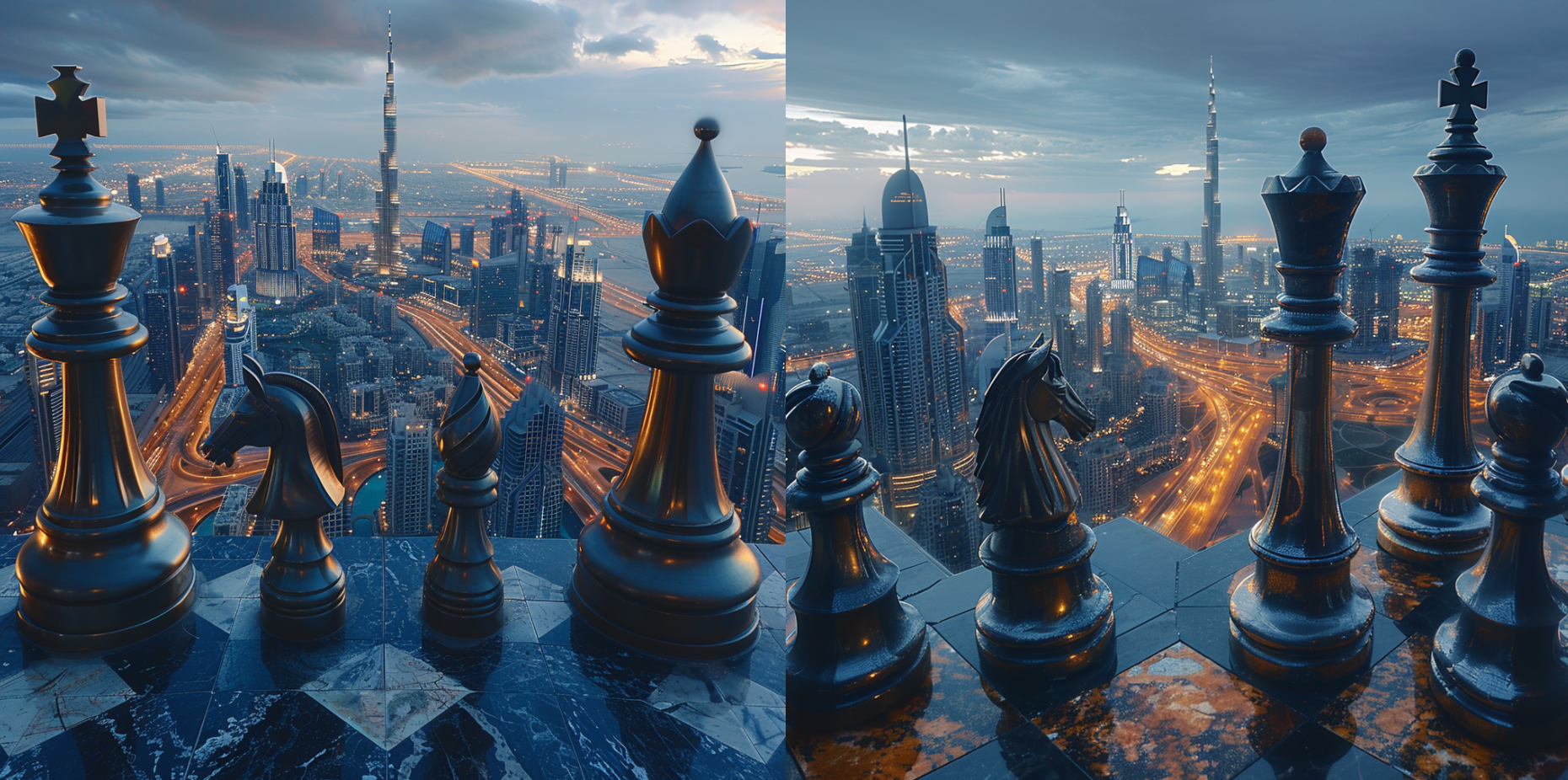 I utilized an ai generator to create illustration that integrate between Dubai icons and chess pieces to extract visual elements from them as sketches